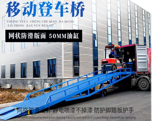 煙臺登車橋-煙臺集裝箱卸貨登車橋-物流登車橋用于無裝卸設備的貨臺及流動裝卸場所,是與叉車配合使用的貨物輔助設備。借助該設備,叉車能直接駛入汽車車廂內部進行批量裝卸作業(yè)。只需單人操作,不需動力電源,即可實物的安全快速裝卸。既可使您減輕勞動強度,又能成倍提高裝卸作業(yè)效率,加快物料流通速度,獲取更大經(jīng)濟效益。