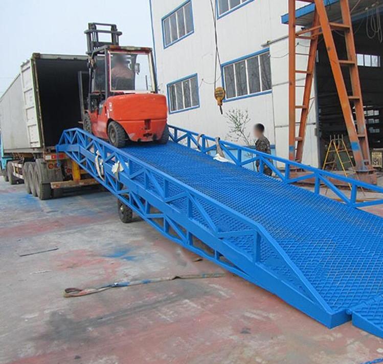 威海登車橋-威海移動(dòng)登車橋-集裝箱裝卸貨平臺(tái)-液壓裝車橋。移動(dòng)登車橋采用人工液壓動(dòng)力,不需外接動(dòng)力電源,只需單人操作,就可以實(shí)現(xiàn)貨物的安全快速裝卸,節(jié)省時(shí)間和人力資源。它可使企業(yè)減少大量勞動(dòng)力,成倍提高裝卸作業(yè)效率,加快貨物流通速度,獲取更大經(jīng)濟(jì)效益。移動(dòng)登車橋被廣泛應(yīng)用于無(wú)裝卸設(shè)備的貨臺(tái)及流動(dòng)裝卸場(chǎng)所,是與叉車配合使用的貨物裝卸輔助設(shè)備。并可以根據(jù)不同的車型及裝車過(guò)程車廂的高度變化進(jìn)行調(diào)節(jié)。廣泛應(yīng)用于工廠運(yùn)輸備料、物流集散中心運(yùn)輸貨物、港口碼頭上下集裝箱,隨著工礦企業(yè)的發(fā)展移動(dòng)式液壓登車橋越來(lái)越被廣泛的應(yīng)用到各行各業(yè)卸貨中。